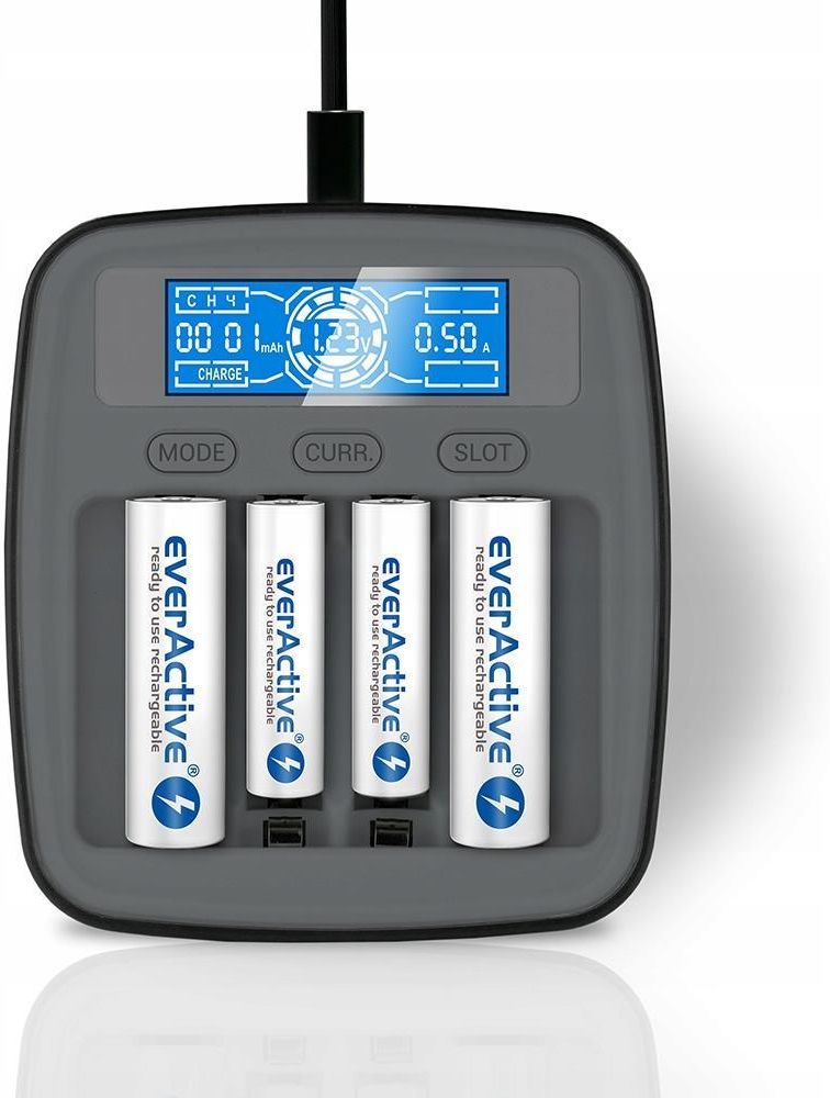 EVERACTIVE Ładowarka akumulatorowa Ni-MH USB-C NC1000MV2 Ładowarka służy do ładowania i konserwacji 1-4szt. akumulatorów R03 AAA / R6 AA wykonanych w technologii Ni-MH oraz Ni-Cd.Doskonała do ogniw nowej generacji typu Eneloop, czy Ready2Use.NC-1000M v2, to mocno odświeżona konstrukcja, młodszy …