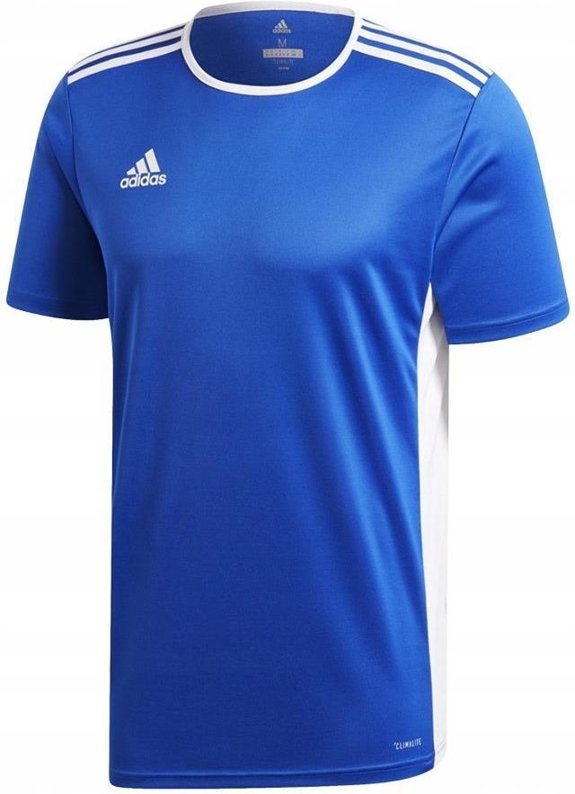Koszulka męska adidas Entrada 18 Jersey niebieska CF1037 Rozmiar 2XL Męska koszulka piłkarska Entrada 18 z nowej kolekcji adidas. Model wykonany został w technologii Climalite, która odprowadza pot na zewnątrz, podnosząc uczucie komfortu oraz zapewnia lepszą wentylacje. Na piersi logo adidas Badge …