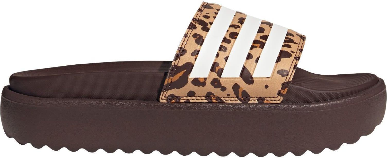 Adidas Women's Adilette Platform Slides Flip-Flop, Shadow Brown/FTWR White/ Opis Description From the pool deck to the shower to the couch, these slides are made for the work-hard-rest-hard lifestyle. The slip-on construction gives you a snug fit that's easy to kick on and off as needed. …