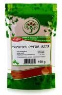Papryka ostra jest niezwykle aromatyczną przyprawą o wyrazistym smaku. Papryka ostra jest niezastąpioną przyprawą w kuchni węgierskiej, meksykańskiej i indyjskiej. Idealnie komponuje się z drobiem i daniami mięsnymi oraz rybnymi. Można dodawać ją do zup, warzyw, sałatek, serów. Jest naturalnym barwnikiem spożywczym, nadaje piękny kolor sosom, ryżowi, makaronom oraz innym wyrobom mącznym. Papryki nie należy podsmażać zbyt długo, bo zgorzknieje i straci kolor. Ostrość (zawartość kapsaicyny):SHU 3000-4000 Skala ostrości - pikantności danej papryki podawana jest w tzw. skali Scoville’a (oznaczanej skrótem SHU). Skala pozwala określić ilość kapsaicyny, czyli substancji powodującej uczucie ostrości w produkcie. Kraj pochodzenia: Hiszpania Pamiętaj!Nasze naturalne mieszanki przypraw nie zawierają antyzbrylaczy, dlatego mogą się zbrylać. W celu uniknięcia tego zjawiska, należy przechowywać je w lodówce.