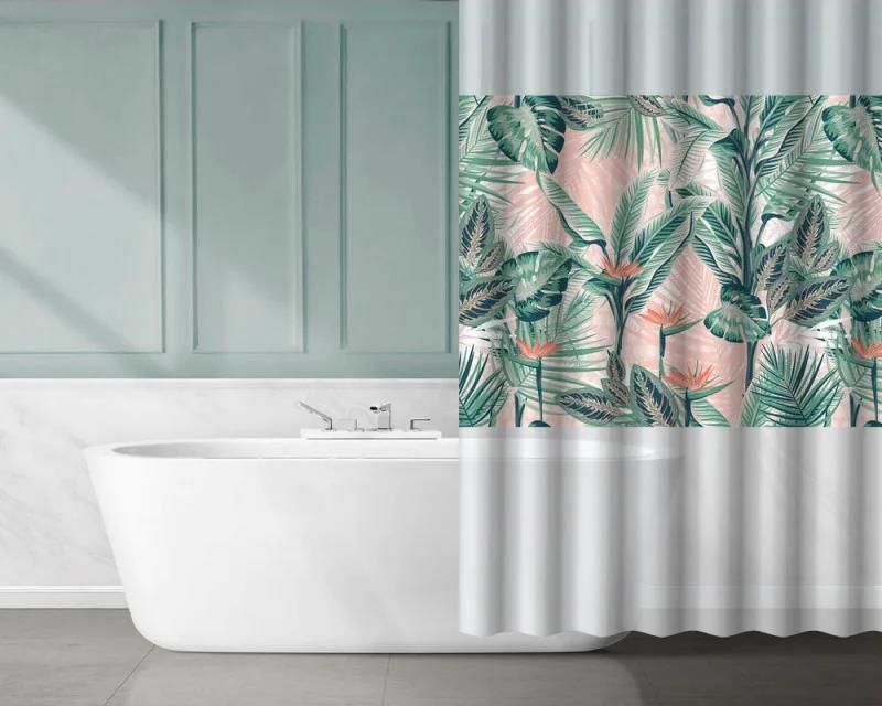 Awd Interior Zasłona Prysznicowa Różowa Zielona Liście 180x180 Peva 1956 Białystok