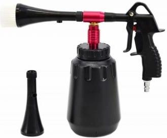 Przeznaczony do usuwania zabrudzeń z tapicerki samochodowej, dywaników, felg, nawiewów powietrza, tablic rejestracyjnych, silnika, etc.Ergonomiczny kształt ułatwia pracę i redukuje zmęczenie ręki.Wyposażony jest w duży, litrowy zbiornik na płyn czyszczący.Zamontowana w pistolecie dysza wytwarza pod wpływem sprężonego powietrza spieniony roztwór czyszczący.Piana jest nanoszona na element pod wysokim ciśnieniem, dzięki czemu czyszczenie jest bardzo skuteczne.Posiada płynną regulację przepływu powietrza oraz ilości pobieranego płynu.Pistolet z możliwością podłączenia do kompresora.Dane techniczne:Przyłącze: 1/4"Ciśnienie powietrza: 6.23 - 9 barWydajność: 280 l/minMateriał: ABS + aluminiumWaga (zestaw): 0.819kgZestaw zawiera:1 x pistolet ze zbiornikiem 1000 ml2 x dysze ( lejkowa + szczotka)EAN: 5903678600211