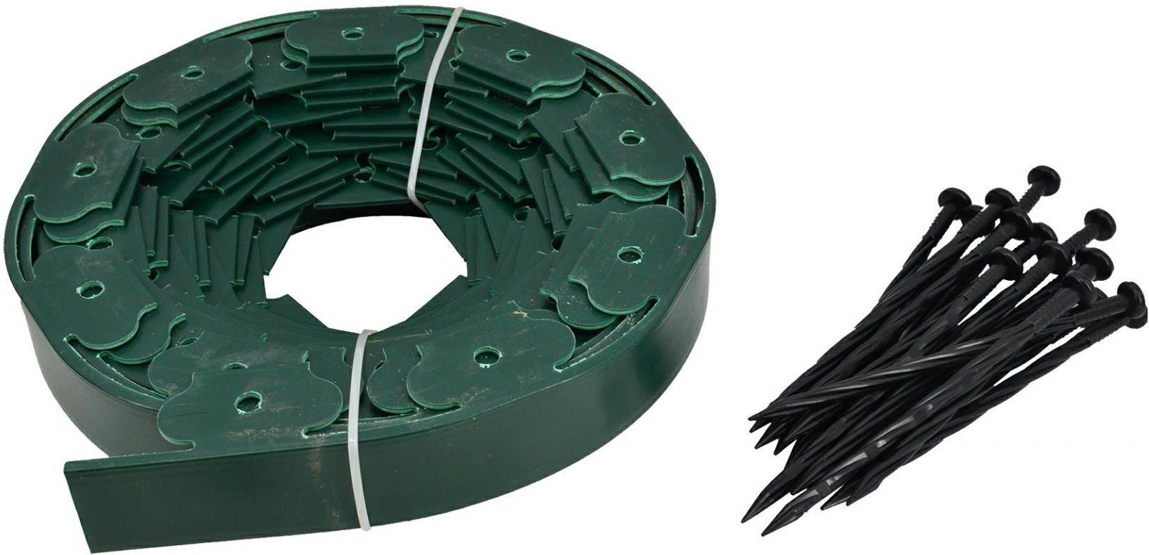 Wykonane z elastycznego, mocnego tworzywa. Umoliwia ukadanie dowolnych ksztatw. Idealne do tworzenia schludnych krawdzi na obrzeach rabat kwiatowych, ciekach, trawnikach, podjazdach i wielu innych miejscach. Przeznaczone do rnych typw nawierzchni. Trwao na czynniki atmosferyczne. Szybki i atwy monta. Dane techniczne: Dugo: 10m Wysoko: 5cm Grubo: 3,5cm Ilo kotew: 30szt. Dugo kotwy: 20cm rednica kotwy: 1,8cm Kolor: zielony Waga: 2,7 kg