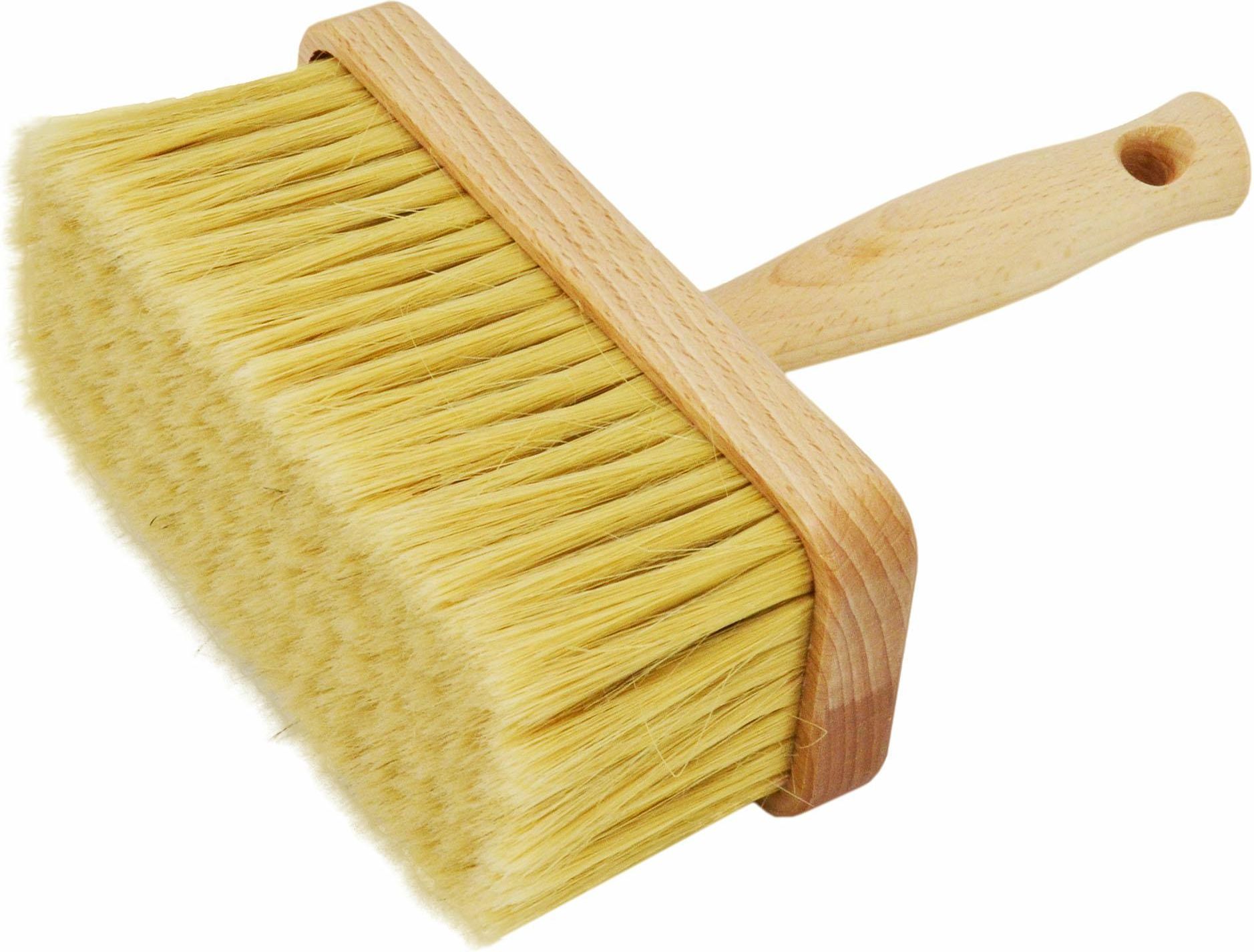 Korpus i trzonek wykonany z drewna z lakierowanym wykończeniem. Wypełniony mieszanką włókna syntetycznego i naturalnej szczeciny. Szerokie włosie ułatwia sprawne pokrycie dużych powierzchni. Uniwersalny, odpowiedni do wszystkich rodzajów farb i lakierów. Przeznaczony do nakładania farb emulsyjnych i fasadowych. Pomocny podczas gruntowania, odpylania, tapetowania czy klejenia. Produkt Polski. Dane techniczne: Szerokość pędzla: 170 mm Grubość pędzla: 70 mm Długość włosia: 64 mm