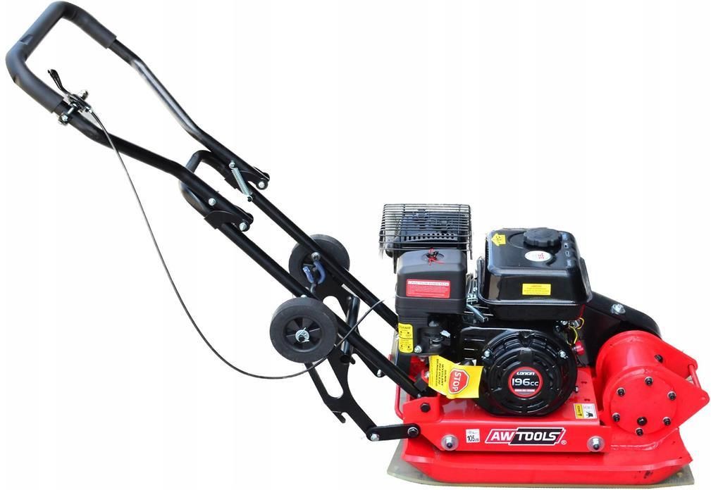 Wykonana z wysokiej jakości stali zapewniającej trwałość. Wyposażona w składane koła transportowe, manetkę gazu oraz matę gumową. Składany uchwyt oraz kompaktowe rozmiary ułatwiają transport oraz magazynowanie. W pełni osłonięty pas klinowy. Wężyk do zlewania oleju oraz czujnik poziomu oleju. Może poruszać się z prędkością do 25 m na minutę. Łatwa w montażu. Przeznaczona do zagęszczania gruntu i asfaltu, ubijania dróg i ścieżek, układania kostki brukowej, czy prac krajobrazowych. Dane techniczne: Silnik: 1-cylinder, 4-taktowy silnik OHV Moc: 6,5KM Długość płyty: 550mm Szerokość płyty: 420mm Siła odśrodkowa: 16000N Max. posuw: 20-25m/min Uderzenia na minutę: 5500 Głębokość zagęszczania: 30cm Poziom wibracji: 16,25m/s2 Zbiornik paliwowy: 3,6L benzyna Waga: 89kg