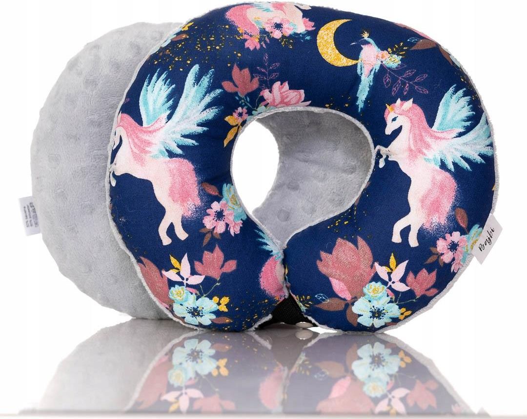 Cechy produktu : Bardzo wygodna do samochodu, samolotu, pociągu. Wykonana w białostockiej pracowni z materiałów najwyższej jakości (polska bawełna + polar minky). Rozmiar zalecany dla osób dorosłych z normalną lub grubszą szyją obwód powyżej 35 cm (jeśli jesteś drobnej budowy polecam poduszkę w rozmiarze dla dzieci) Każdy produkt jest szyty pod zamówienie, dajemy sobie dwa dni robocze na realizację, ale w miarę możliwości staramy się by było to poniżej 24 h mając na uwadze to, że często zamówienia są pilnie potrzebne :) Zapięcie na nap pozwala przewozić poduszkę wygodnie nie zajmując dodatkowego miejsca w bagażu- dopinając do walizki, paska od spodni Dzięki zapięciu na nap poduszka nie wędruje po samochodzie tylko może zostać wpięta w zagłówek lub przypięta do pasa Wypełnienie antyalergiczne - miękka puszysta kulka silikonowa zapewniająca komfort podróżowania i możliwość prania poduszek w pralce (dla porównania -większość poduszek na rynku jest wypełniana kulką styropianową, której niewolno prać i która utlenia się, bardzo szybko zmieniając walory poduszki). Model : przód jednorożce granat / tył szare minky (zdjęcie poglądowe wzór na produkcie może się ułożyć inaczej) Wymiary : około 28/32 cm średnica wewnętrzna ok 13 cm Rozmiar : dla osób dorosłych z normalną lub grubszą szyją - obwód szyi powyżej 35 cm (jeśli jesteś drobnej budowy polecam rozmiar dla dzieci) Cena : dotyczy 1 sztuki Skład : 100% bawełna 100% poliester minky wypełnienie puszysta poliestrowa kulka silikonowa antyalergiczna Pranie : Prać w temperaturze 40 st. C Nie wirować Nie prasować po stronie polaru minky Nie suszyć w suszarce bębnowej Polecamy inne produkty z tej serii do kompletu. Produkt Polski z małej manufaktury na poddaszu. Kupując ten produkt wspierasz polską firmę, która wkłada w to całe serce. Dziękuję