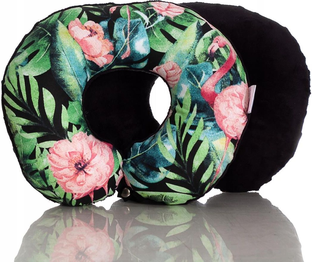 Cechy produktu : Bardzo wygodna do samochodu, samolotu, pociągu. Wykonana w białostockiej pracowni z materiałów najwyższej jakości (polska bawełna + polar minky). Wypełnienie antyalergiczne - miękka puszysta kulka silikonowa zapewniająca komfort podróżowania i możliwość prania poduszek w pralce (dla porównania -większość poduszek na rynku jest wypełniana kulką styropianową, której niewolno prać i która utlenia się, bardzo szybko zmieniając walory poduszki). Rozmiar zalecany dla osób dorosłych z normalną lub grubszą szyją obwód powyżej 35 cm (jeśli jesteś drobnej budowy polecam poduszkę w rozmiarze dla dzieci) Zapięcie na nap pozwala przewozić poduszkę wygodnie nie zajmując dodatkowego miejsca w bagażu- dopinając do walizki, paska od spodni Dzięki zapięciu na nap poduszka nie wędruje po samochodzie tylko może zostać wpięta w zagłówek lub przypięta do pasa Wypełnienie antyalergiczne - miękka, puszysta kulka silikonowa zapewniająca komfort podróżowania i możliwość prania poduszek w pralce (dla porównania -większość poduszek na rynku jest wypełniana kulką styropianową, której niewolno prać i która utlenia się, bardzo szybko zmieniając walory poduszki). Model : przód flamingi kwieciste / tył czarne minky (zdjęcie poglądowe wzór na produkcie może się ułożyć inaczej) Rozmiar : dla osób dorosłych z normalną lub grubszą szyją - obwód szyi powyżej 35 cm (jeśli jesteś drobnej budowy polecam rozmiar dla dzieci) Wymiary : około 28/32 cm średnica wewnętrzna około 13 cm Skład : 100% bawełna 100% poliester minky wypełnienie puszysta poliestrowa kulka silikonowa antyalergiczna Pranie : Prać w temperaturze 40 st. C Nie wirować Nie prasować po stronie polaru minky Do Rogala Polecamy opaskę na oczy i nakładkę na pas oraz inne produkty z serii. Wszystkie produkty wykonujemy osobiście i jesteśmy otwarci na rozmowy, jeśli potrzebujesz ekspresowej wysyłki, ekspresowego haftu lub jakiejś zmiany w produkcie - da się zrobić. Dołożymy wszelkich starań by spełnić Twoje oczekiwania !!