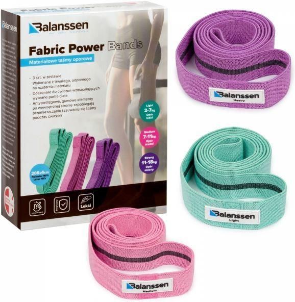 Balanssen Fabric Power Band Zestaw 3 Gum Materiałowych Oporowych Do Ćwiczeń Białystok