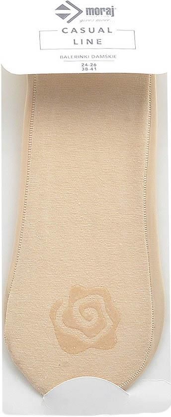 Balerinki damskie marki Moraj: - bardzo dobrze chronią przed otarciami - nie wystają z obuwia - silikon na zapiętce - wykonane z miękkiej wysokogatunkowej bawełny - materiał łatwo przepuszczający powietrze - skład: - góra: - 65% poliamid - 35% elastan - dół: - 95% bawełna - 5% elastan