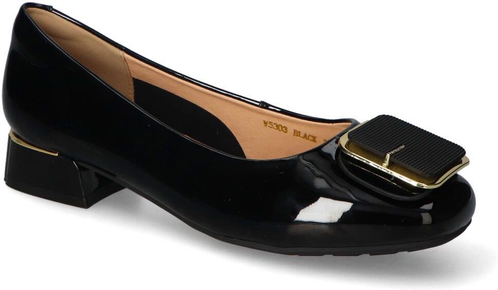 Eleganckie baleriny renomowanej marki Loretta Vitale:- wykonane z najlepszej jakości skóry naturalnej lakierowanej- wnętrze pokryte zostało skóra ekologiczną aby zapewnić komfort podczas użytkowania - wkładka wewnętrzna wykonana ze skóry naturalnej - obcas o wysokości 3 cm zapewnia odpowiednią stabilizację - czarny kolor, piękna ozdoba i modny fason tworzą idealne połączenie!