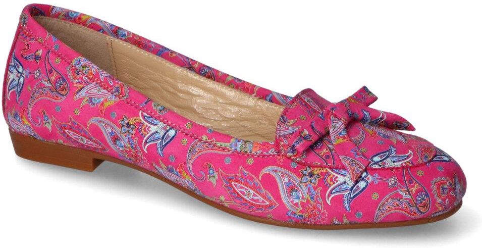 Baleriny Modo to doskonały wybór dla kobiet, które cenią sobie połączenie elegancji i wygody. Wykonane z wysokiej jakości skóry naturalnej, te baleriny wyróżniają się nie tylko trwałością, ale także niezwykle stylowym wyglądem. Intensywny różowy kolor z pięknym wzorem paisley sprawia, że są one idealnym dodatkiem do letnich stylizacji, dodając im świeżości i lekkości.Skórzana wkładka zapewnia komfort noszenia przez cały dzień, co czyni je idealnymi do codziennych aktywności, takich jak spacery czy spotkania towarzyskie. Dzięki niskiemu obcasowi, baleriny Modo są łatwe do zakupu i idealnie sprawdzają się w każdej sytuacji. Dodatkowo, subtelna kokardka na przodzie dodaje im uroku i kobiecości.Baleriny Modo to doskonały wybór na każdą okazję. Ich funkcjonalność i modny design czynią je nie tylko praktycznym, ale również stylowym elementem każdej garderoby. Wybierz baleriny Modo, aby cieszyć się komfortem i elegancją przez cały sezon.