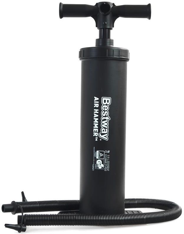 DWUKIERUNKOWA - pompka pompuje w obie strony, zarówno podczas ruchu w górę jak w dół, co zwiększa jej wydajność. KOMPAKTOWE WYMIARY - dzięki jej niewielkim wymiarom możemy ją zabrać w podróż, bez problemu zmieści się w bagażniku, jest lekka i poręczna. Nie trzeba jej podłączać do prądu elektrycznego, więc idealnie sprawdzi się również podczas wyjazdu pod namiot. UNIWERSALNA - w zestawie znajdują się 3 końcówki, dzięki czemu napompujemy materace, pontony, dmuchane zabawki, baseny itd. DŁUGI WĄŻ - wąż o długości 85cm pozwala na komfortowe pompowanie, nie musimy schylać się do danego produktu, wystarczy stanąć podnóżki znajdujące się na dole pompki i wygodnie napompować produkt. SPECYFIKACJA kod produktu Bestway: 62030 wymiary (szer/wys): 20/48cm długość węża: 85cm pojemność: 2000 cm3 przepustowość: 3,5L/cykl końcówki: 3szt. wymienne waga: 1kg W ZESTAWIE pompka 3 wymienne końcówki elastyczny wąż Pompka ręczna dwukierunkowa do pompowania materacy, pontonów, piłek, dmuchanych zabawek etc. Pompuje powietrze zarówno podczas ruchu w górę i w dół, co zwiększa wydajność i zmniejsza czas pompowania. Bardzo prosta w użyciu, lekka poręczna, bez problemu zmieści się do bagażu podróżnego. Posiada 3 wymienne końcówki, które pasują do wszystkich produktów dmuchanych. Nie trzeba jej podłączać do prądu, więc idealnie sprawdzi się podczas wyjazdów pod namiot. Została skonstruowana tak, by każdy ruch góra, dół wtłaczał powietrze o pojemności 2000cm3. Wąż o długości 85cm pozwala na komfortowe pompowanie, nie musimy schylać się do danego produktu, wystarczy stanąć podnóżki znajdujące się na dole pompki i wygodnie napompować produkt.
