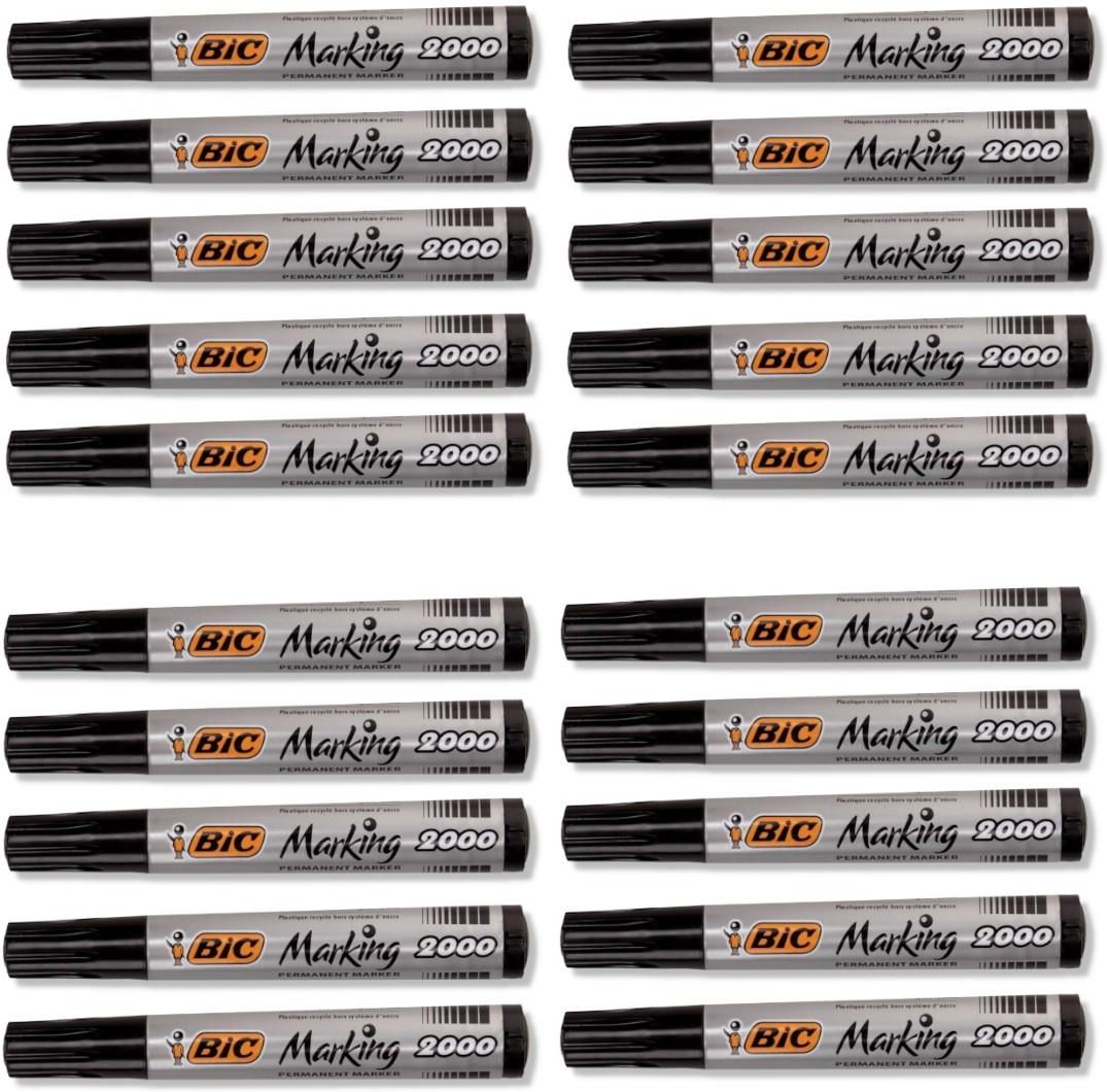 Marker Permanentny Bic Czarny Okrągła Końcówka 20szt Tusz na bazie alkoholu, bezzapachowy Bez skuwki nie wysycha przez 3 tygodnie Zablokowana końcówka nie ugina się i nie cofa pod naciskiem Długość linii pisania dla końcówki okrągłej 1400 m, dla ściętej 1100 m Okrągła końcówka. Średnica 5,5 mm, grubość linii pisania 1,7 mm