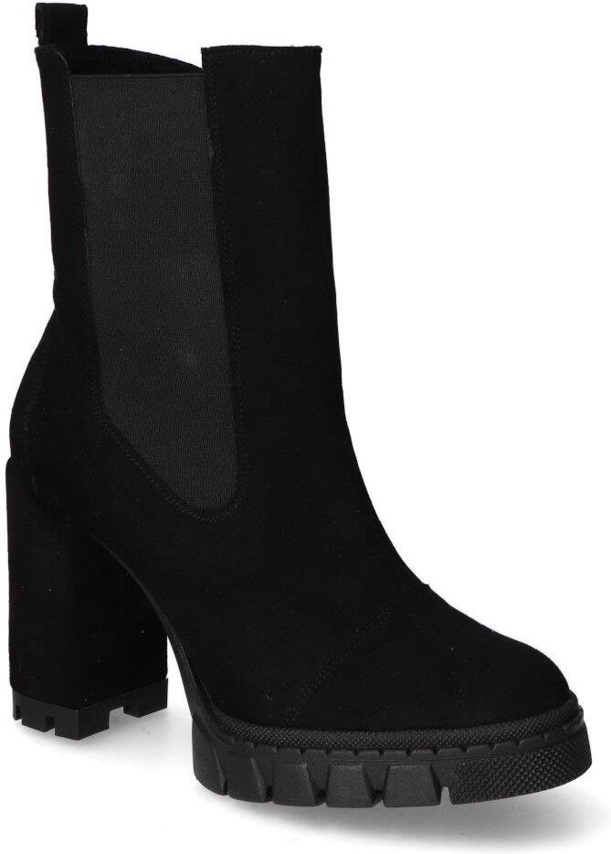 Eleganckie botki znanej marki For-But: - cholewka wykonana została z najwyższej jakości skóry ekologicznej zamszowej - wnętrze pokryte zostało materiałem ocieplającym - ocieplana wkładka wewnętrzna aby zapewnić ciepło podczas użytkowania - obcas o wys. 10 cm zapewnia stabilizację - klasyczny czarny kolor oraz modny fason tworzą idealne połączenie!