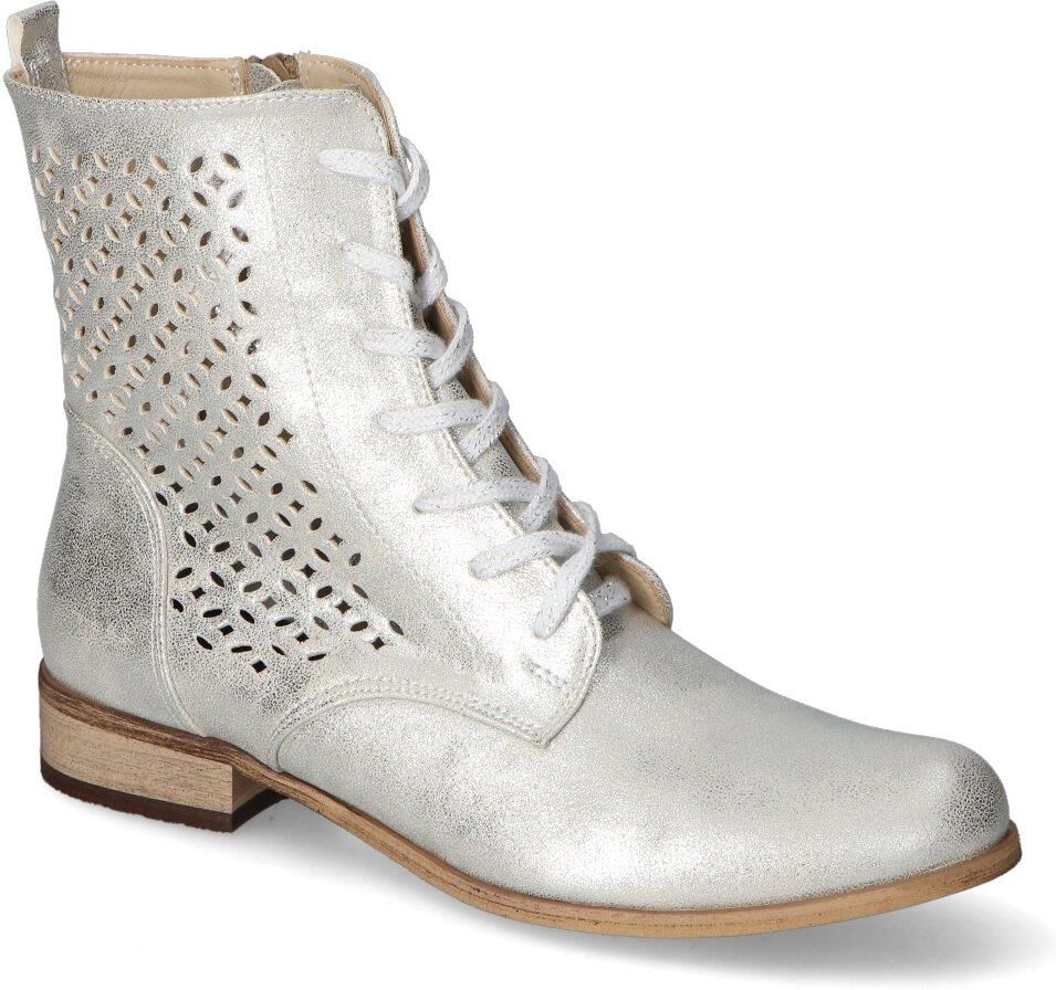 Eleganckie botki znanej marki For-But: - cholewka wykonana została ze skóry ekologicznej - wnętrze pokryte zostało skórą ekologiczną - wkładka wewnętrzna wykonana została z materiału ocieplającego aby zapewnić ciepło podczas użytkowania w zimne dni - zamek błyskawiczny oraz sznurowadła ułatwiają zakładanie obuwia - płaski obcas o wys. 2 cm zapewnia stabilizację i nadaje elegancji - srebrny kolor, ażurowy wzór i modny fason tworzą zachwycający efekt!