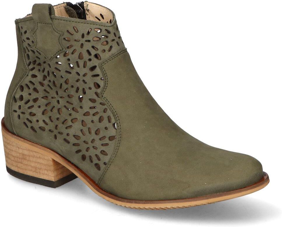 Modne botki damskie Pulso: - cholewka wykonana została ze skóry naturalnej nubukowej - wnętrze pokryte zostało skórą naturalną aby zapewnić komfort podczas użytkowania - wkładka wewnętrzna wykonana ze skóry naturalnej - obcas o wys. 5 cm zapewnia odpowiednią stabilizację - zielony kolor i ażurowy wzór tworzą niesamowity efekt, który zachwyci każdego!