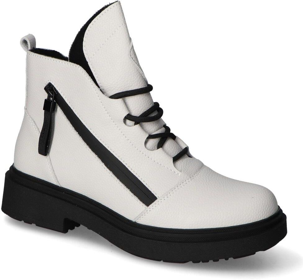 Botki Sergio Leone, wykonane z najwyższej jakości skóry naturalnej, to idealne połączenie elegancji i funkcjonalności na zimowe miesiące. Ich klasyczna biała barwa w połączeniu z czarnymi akcentami dodaje nowoczesnego charakteru i sprawia, że wyróżniają się na tle innych modeli.Ocieplane wnętrze i wkładka zapewniają wyjątkowy komfort termiczny, chroniąc stopy przed chłodem. Dzięki temu botki Sergio Leone są doskonałym wyborem na zimowe spacery i codzienne wyjścia, gwarantując ciepło nawet w najchłodniejsze dni.Gruba podeszwa zapewnia doskonałą przyczepność i stabilność, co czyni te botki idealnym wyborem na śliskie nawierzchnie. Praktyczne sznurowanie i boczny zamek pozwalają na łatwe zakładanie i idealne dopasowanie obuwia do stopy.Botki Sergio Leone to połączenie stylu i praktyczności, które zadowoli nawet najbardziej wymagających użytkowników. Są nie tylko funkcjonalne, ale także stanowią modny dodatek do każdej zimowej garderoby.