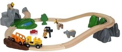 BRIO World Kolejka Drewniana Safari Numer kat. 33960 Przyjaznym rykiem lew wita gości w swoim. Drewniany pociąg BRIO World Safari Adventure umożliwia bezpieczne zwiedzanie sawanny i podziwianie zwierząt w ich naturalnym otoczeniu. W pociągu można spotkać lwa, żyrafę i słonia. Jest też strażnik parku z aparatem fotograficznym, który uchwyci ciekawe momenty. Strażnik ma ze sobą również torbę pielęgnacyjną na wypadek, gdyby zwierzętom potrzebna była pomoc medyczna. Zabawka posiada certyfikat FSC, który gwarantuje, że pozyskując drewno do produkcji firma BRIO zachowuje żywotność lasów i ich bogactw naturalnych. Ilość elementów:  26 Wymiary produktu: - szerokość: 698 mm - głębokość: 546 mm - wysokość: 90 mm Wymiary opakowania: - szerokość: 345 mm - wysokość: 345 mm - głębokość: 120 mm Wiek: od 3 lat