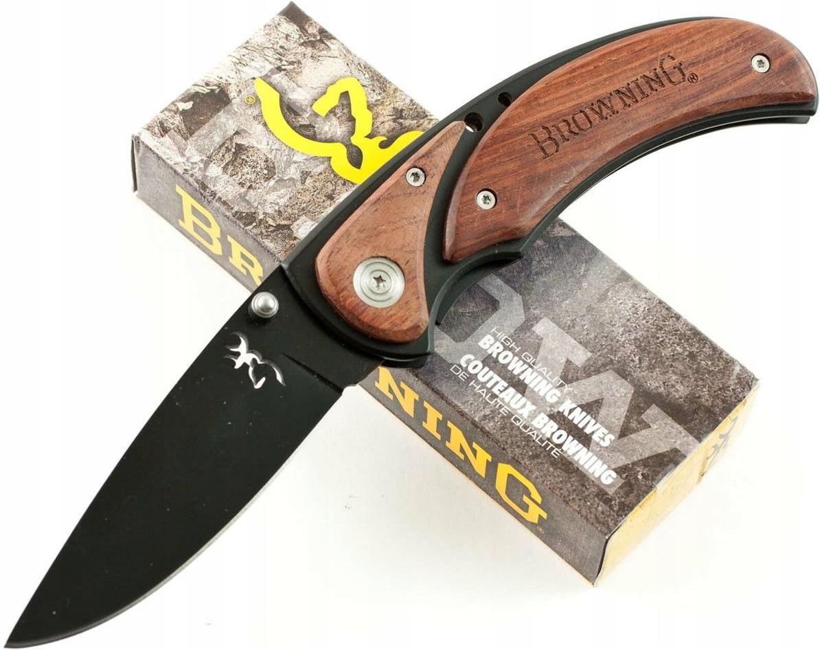 Nóż składany Browning 322068 BR068 Długość w stanie zamkniętym 114 mm Ostrze ze stali nierdzewnej, wykończenie czarne Uchwyt z okładzinami z drewna cocobolo Kieszonkowy klips Waga 136 g