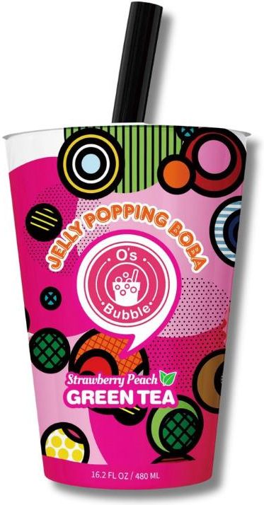 Bubble Tea Strawberry Peach 480ml. To orzeźwiająca zielona herbata o smaku truskawki i brzoskwini z kuleczkami popping boba.