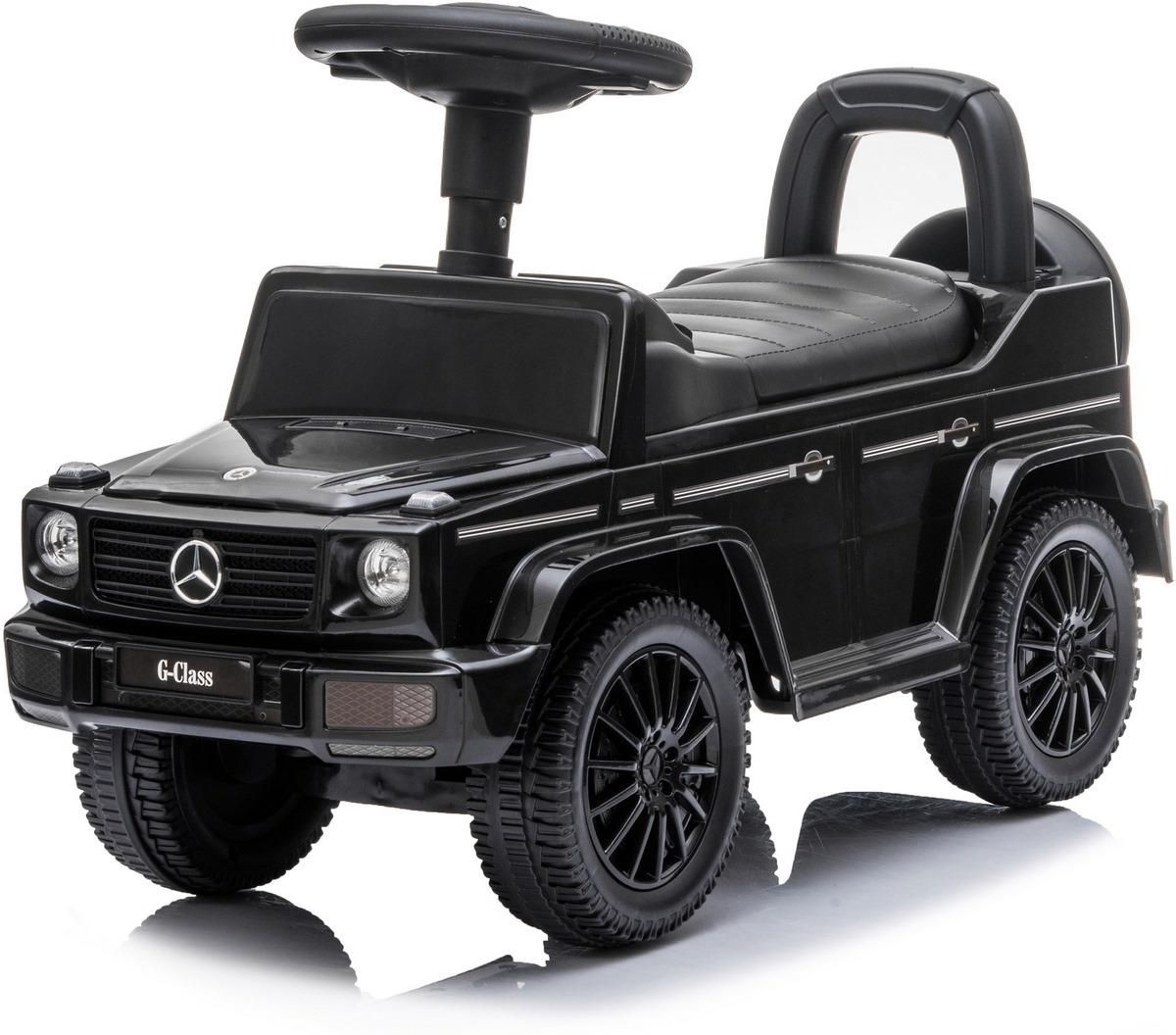 Chcesz, aby Twoje dziecko miało wyjątkowy odpychacz, za którym będą się oglądać inne dzieci i rodzice? W takim razie kup mu model Mercedes G350d. Jest to pomniejszona replika prawdziwego samochodu terenowego. Twoje dziecko doceni dużą przestrzeń pod siedzeniem, gdzie może umieścić swoje ulubione zabawki. Rodzice docenią bezpieczne oparcie, które zapobiega przewróceniu się samochodu do tyłu. Parametry techniczne i specyfikacja: oficjalny licencjonowany produkt schowek pod siedzeniem dźwięki i melodie na kierownicy siedzisko ma 26 cm wysokości