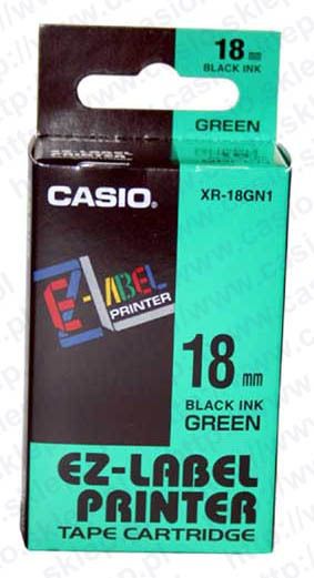 Tama do drukarek etykiet marki Casio XR-18GN1 czarny druk/zielony podkad, nielaminowany Dugo tamy to a 8m Szeroko tamy 18mm