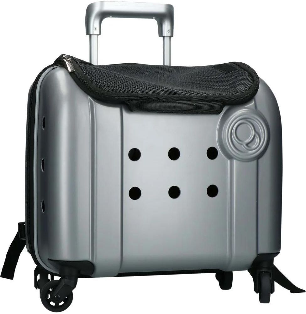 Zabierz swojego zwierzaka ze sobą na wycieczkę w tej komfortowej walizce London marki Compaws. Wyposażona w cztery kółka, teleskopowy uchwyt i regulowane szelki z tyłu torba dla zwierząt może być używana w formie walizki lub plecaka. Za sprawą kilku otworów wentylacyjnych, smyczy bezpieczeństwa i wyjmowanej wkładki ułatwiającej czyszczenie, ta walizka dla zwierząt zapewni Twoim małym przyjaciołom komfortowe warunki i właściwy przepływ powietrza. Ponadto wykonany z wytrzymałego i trwałego materiału transporter dla zwierząt będzie wspaniałym akcesorium dla Ciebie i Twojego ulubionego futrzaka!