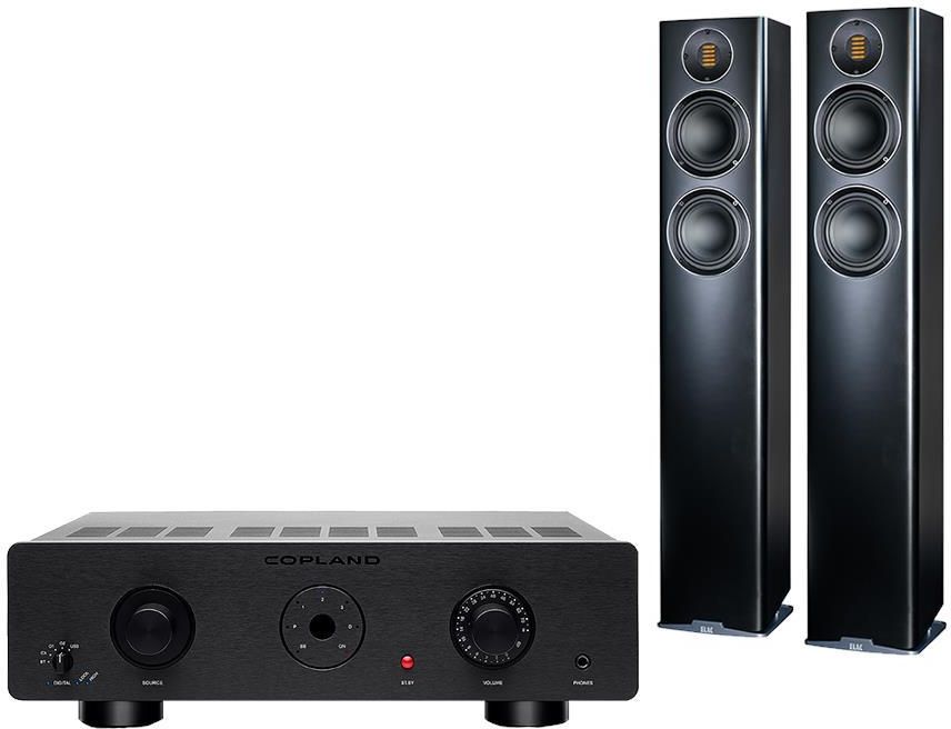 Zestaw składający się ze zintegrowanego wzmacniacza Copland CSA70 oraz kolumn Elac Carina FS247