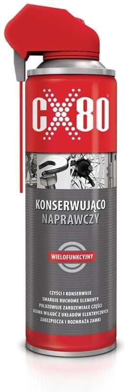 CX80 PREPARAT KONSERWUJĄCO-NAPRAWCZY duospray WŁAŚCIWOŚCI PRODUKTU szybko rozluźnia zardzewiałe i zapieczone elementy czyści i zabezpiecza urządzenia przed rdzą doskonale usuwa piski i skrzypienia zawiasów, zamków, karniszy i innych urządzeń mechanicznych poprawia działanie układów zapłonowych …