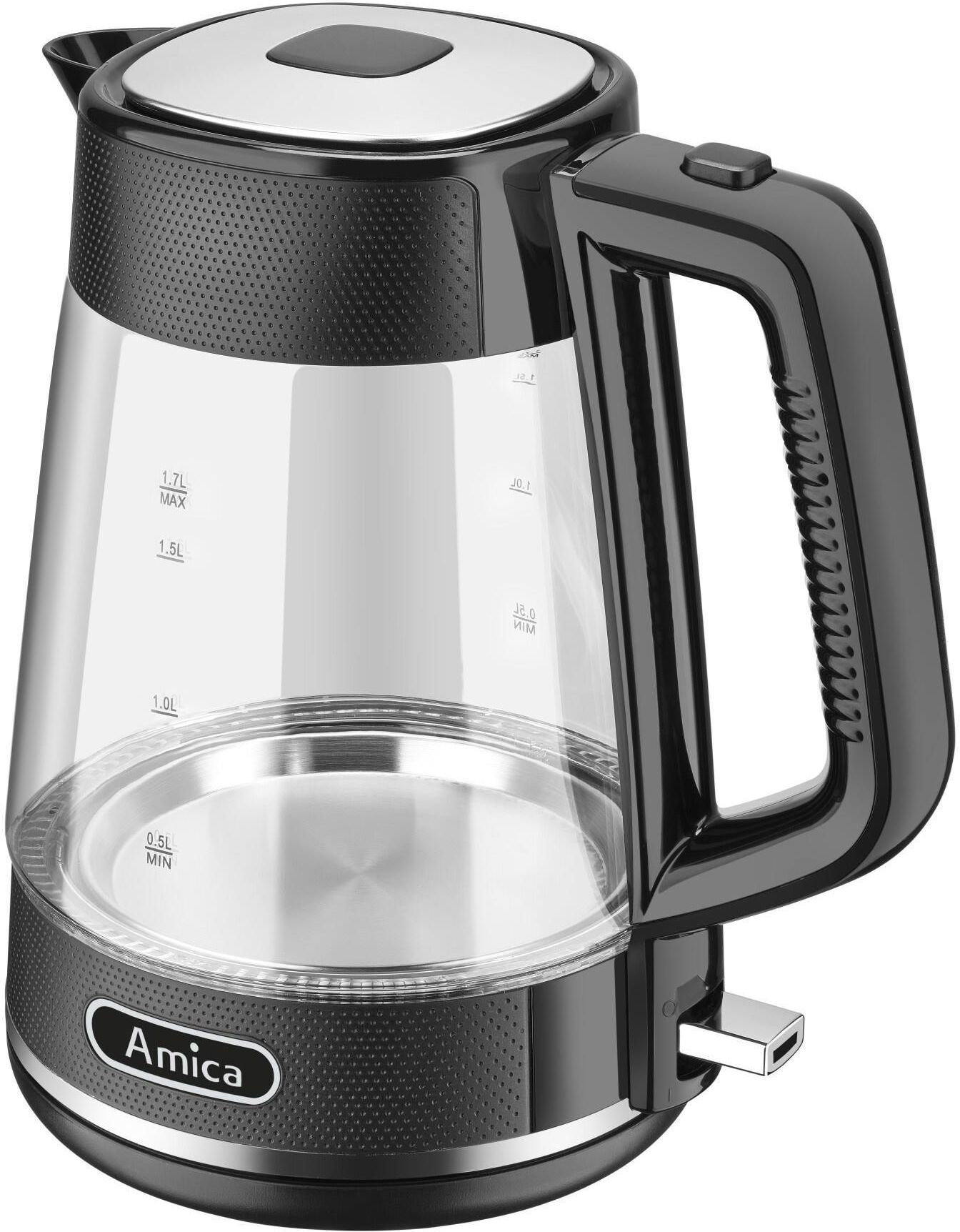 Czajnik elektryczny Amica KF4050G Kontroler Strix / OtterGwarancja jakości i długa żywotność urządzeniaNie ma wytrzymałego czajnika elektrycznego bez odpowiedniego kontrolera – czyli bez systemu odpowiedzialnego za przesyłanie energii między podstawką czajnika, a samym urządzeniem. Dlatego Amica stosuje najlepsze na rynku kontrolery firmy Strix lub Otter! Dzięki innowacyjnym rozwiązaniom dłuższa jest żywotność sprzętu, a dla Ciebie to oszczędność. Teraz możesz cieszyć się swoim czajnikiem dłużej!Obrotowa podstawa 360°Wygoda dla prawo i lewo-ręcznych osóbOdstawienie czajnika do wyjściowej pozycji bywa czasem kłopotliwe – zwłaszcza gdy robisz to lewą ręką. Dlatego podstawa czajnika Amica jest obrotowa! Teraz sięganie po urządzenie czy odkładanie go zawsze będzie komfortowe – niezależnie czy jesteś prawo-, czy leworęczny. Korzystaj wygodnie! Wyjmowany filtr antywapiennyCzysta woda - bez kamienia wapiennegoTwarda woda w kranie? Osadzający się kamień może nie tylko mieć wpływ na Twoje zdrowie, ale i wyglądać mało estetycznie. Dlatego czajniki Amica wyposażyliśmy w specjalny, wyjmowany filtr! Zabezpiecza on wodę, którą pijesz, przed przenikaniem do niej wytrącającego się podczas gotowania wapnia. Poprawia jej właściwości i długo utrzymuje czajnik w najlepszym stanie. To higiena i lepszy smak wody w jednym!EasyOpenUłatwione otwieranie czajnikaElektryczny czajnik to wygoda. Niech jego użytkowanie będzie więc tak wygodne, jak to tylko możliwe! Dzięki ukrytemu w rączce przyciskowi EasyOpen nie musisz już ręcznie otwierać pokrywki czajnika – wystarczy klik i już masz łatwy dostęp do jego wnętrza! Takie rozwiązania ułatwiają Ci życie na każdym kroku!Baza antypoślizgowaKonstrukcja antypoślizgowej bazy wyraźnie zwiększa stabilność urządzenia i zapobiega jego ślizaniu się po powierzchni - nawet mokrej. Schowek na przewód sieciowyPodstawa w czajnikach Amica została zaprojektowana tak, by móc schować w niej zbędny odcinek przewodu.Quick&CleanŚrednica pokrywy czajników Amica jest odpowiednio większa - by móc swobodnie włożyć do środka rękę i w prosty sposób umyć sprzęt od środka.Płaska grzałkaPozwala na łatwiejsze utrzymanie czajnika w czystości. Zaawansowana konstrukcja grzałki to też mniejsze zużycie prądu.Zabezpieczenie przed przegrzaniemJeśli temperatura urządzenia niebezpiecznie wzrośnie, sprzęt automatycznie się wyłączy. Po ochłodzeniu znów będzie gotowy do użycia.Dane techniczne: Antypoślizgowa baza Zabezpieczenie przed przegrzaniem Płaski element grzejny Filtr antywapienny Wskaźnik poziomu wody Kontroler Strix Schowek na przewód EasyOpen Podświetlany włącznik Quick&Clean Obrotowa baza 360° Dane techniczne Długość przewodu przyłączeniowego: 70 cm Szerokość netto: 216 mm Głębokość netto: 158 mm Waga netto: 1.07 kg Wysokość netto: 242 mm Rodzaj wtyczki: Wtyczka Euro Pojemność: 1.7 l Moc znamionowa (W): 1850-2200 Rodzaj obudowy: Szkło Napięcie V: 220-240V Częstotliwość: 50Hz / 60Hz Materiał obudowy: Szkło Kolor obudowy: Czarny, Przezroczysty Dane logistyczne Waga brutto: 1.3 kg Szerokość brutto: 215 mm Wysokość brutto: 243 mm Głębokość brutto: 216 mm