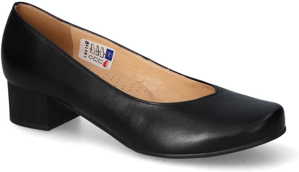 Wyjątkowe czółenka renomowanej marki Galant: - wykonane z najlepszej jakości naturalnej skóry licowej - wnętrze pokryte skórą naturalną aby zapewnić komfort podczas użytkowania - wkłada wewnętrzna wykonana ze skóry naturalnej - obcas o wys. 4 cm zapewnia stabilizację stopy - czarny kolor i modny fason tworzą efekt, który zachwyci każdego!
