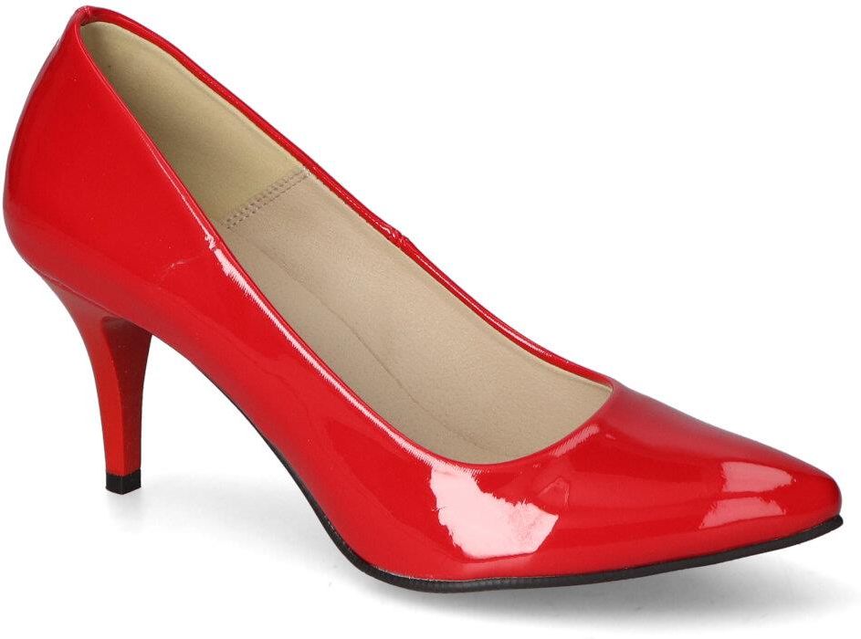 Eleganckie czółenka znanej marki Krzyś-But: - cholewka została wykonana ze skóry ekologicznej lakierowanej - wnętrze zostało pokryte skórą ekologiczną aby zapewnić komfort podczas użytkowania - wkładka wewnętrzna została wykonana ze skóry ekologicznej - szpilka o wys. 8 cm dodaje szyku i elegancji - intensywny czerwony kolor oraz modny fason sprawią, że każda kobieta poczuje się w nich wyjątkowo!