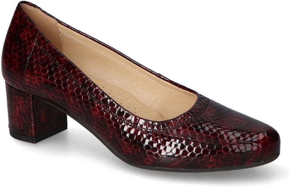 Modne czółenka damskie Pulso: - cholewka wykonana została ze skóry naturalnej lakierowanej - wnętrze pokryte zostało skórą naturalną aby zapewnić komfort podczas użytkowania - wkładka wewnętrzna wykonana ze skóry naturalnej - obcas o wys. 5 cm zapewnia stabilizację - bordowy kolor i modny fason tworzą niesamowity efekt!