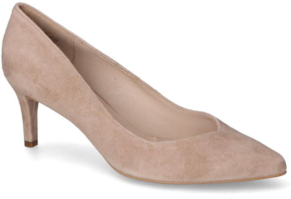Piękne czółenka cenionej marki Ryłko: - cholewka wykonana została ze skóry naturalnej zamszowej - wnętrze została pokryte skórą naturalną aby zapewnić komfort podczas użytkowania - wkładka wewnętrzna wykonana została ze skóry naturalnej - obcas wys. 7 cm zapewnia odpowiednią stabilizację - beżowy kolor oraz modny fason tworzą zachwycający efekt!
