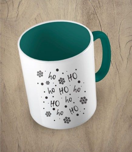 Zimowy kubeczek w delikatne śnieżynki z napisem ho, ho, ho, nawiązującym do zawołania świętego Mikołaja.