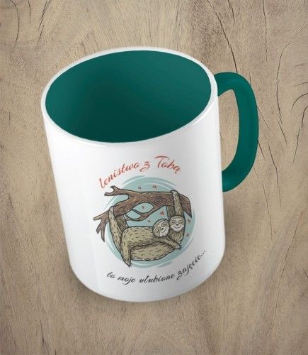 Uroczy kubeczek z leniwcami i napisem "Lenistwo z Tobą to moje ulubione zajęcie".