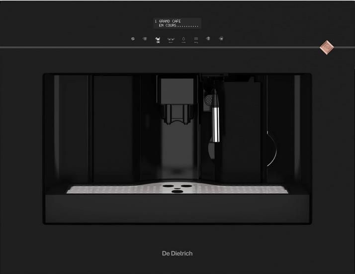 Produkt będzie dostępny od 03.11.2025 De Dietrich DKD4810H – w pełni automatyczny ekspres do zabudowy. Nowoczesny i elegancki ekspres w głębokiej czerni z miedzianymi detalami, wyposażony w dotykowy panel i czytelny wyświetlacz LCD. Pozwala personalizować każdą kawę dzięki regulacji mielenia, temperatury, ilości wody i kawy. Pojemniki — na wodę (1,8 l) i ziarna (200 g) — oraz pojemnik na fusy ułatwiają użytkowanie. Mocna pompa 15 bar oraz możliwość przygotowania dwóch filiżanek jednocześnie. Perfekcyjna kawa za dotknięciem palca.