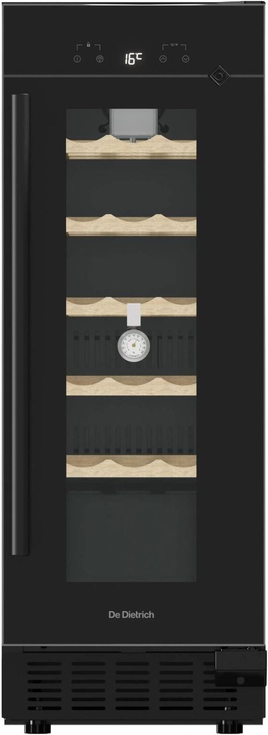 DUW20FB Jednostrefowa wbudowana szafka na wino Całkowita pojemność: 20 butelek Zakres ustawień temperatury: 5-20°C Drzwi szklane z uchwytem pionowym Szkło z filtrem UV Panel sterowania z przodu drzwi Zabezpieczenie przed dziećmi Białe oświetlenie LED z włącznikiem Biały wyświetlacz Elektroniczna kontrola temperatury Automatyczne rozmrażanie Higrometr, kontrola wilgoci System antywibracyjny Aktywny system wentylacji 5 wysuwanych półek drewnianych Alarm otwartych drzwi Roczne zużycie energii: 98 kWh Poziom hałasu: 38 dB Klasa energetyczna: F Szer. 29.5 cm Wys. 82 cm Głęb. 57 cm