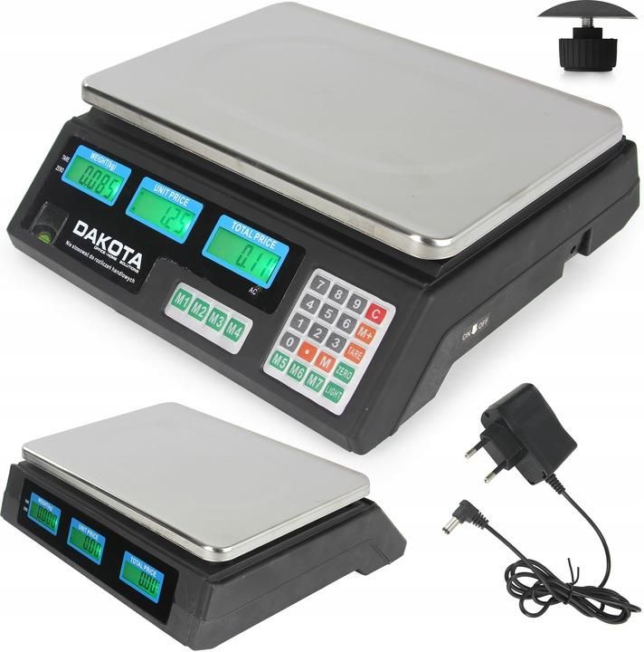 WAGA ELEKTRONICZNA 40KG Waga Sklepowa Handlowa Mobilna z WYŚWIETLACZEM LCD Waga do Sklepu Waga Targowa Specyfikacja Obciążenie maksymalne: 40 kg Zasilanie: 230V / 50Hz Typ wyświetlacza: LCD z podświetleniem Liczba wyświetlaczy: 6 (3 dla obsługi, 3 dla klienta) Pamięć: do 7 cen jednostkowych …