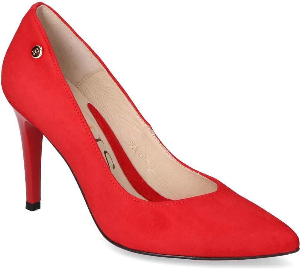 Wyjątkowe czółenka polskiej produkcji Emis:- cholewka wykonana została ze skóry naturalnej zamszowej - wnętrze pokryte zostało skórą naturalną aby zapewnić komfort podczas użytkowania - szpilka o wys. 9 cm zapewnia stabilizację i nadaje elegancji - czerwony kolor oraz elegancki fason zachwycą każdą kobietę!
