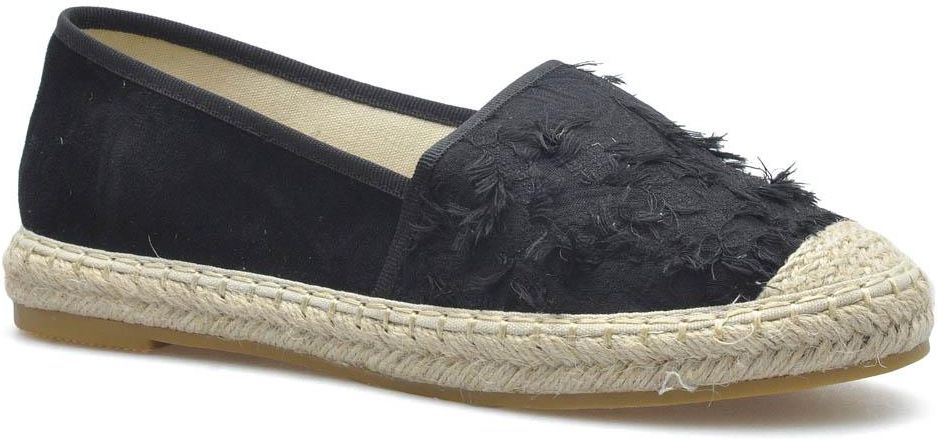 Stylowe espadryle: - wykonane z materiału tekstylnego wysokiej jakości - wnętrze wykonane z najlepszej jakości materiału tekstylnego - wkładka wewnętrzna wykonana została z tworzywa syntetycznego aby zapewnić komfort podczas noszenia obuwia - czarny kolor oraz modny fason tworzą niesamowity efekt, który zachwyci każdego!