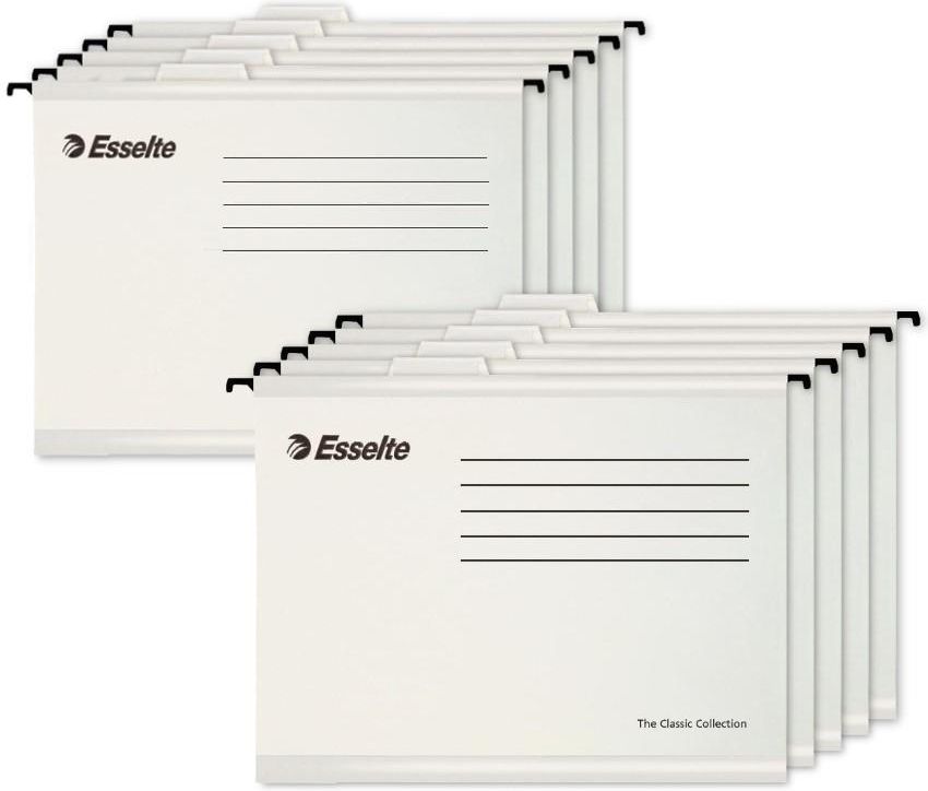 Komplet Teczka Zawieszana A4 ESSELTE PENDAFLEX STANDARD 10 Szt Biały Bardzo wytrzymałe teczki zawieszane w intensywnych kolorach, Teczka 10 razy mocniejsza od poprzedniej wersji, Dno teczki oraz listwa z zawieszkami wzmocniona specjalna folią, co czyni ją 10 razy mocniejszą od poprzedniej wersji, …