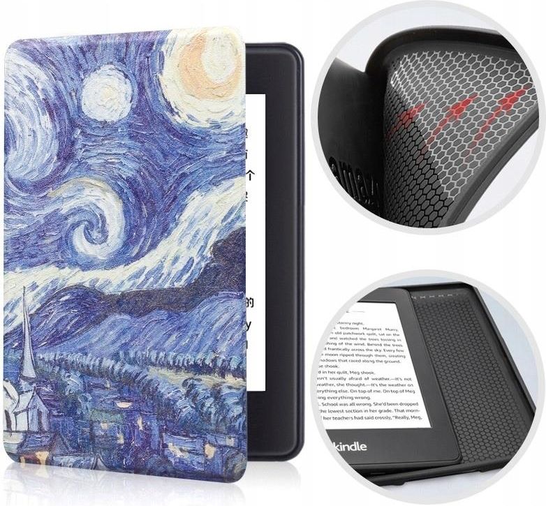 Etui do Kindle 10 Touch silikonowy tył ----------------------------------------------------------- Dostępność: Wys. w 24h Kolor: 12. Painting ----------------------------------------------------------- Kompatybilne z urządzeniem: Amazon Kindle 10 Touch (2019-) Materiał etui na tablet: tworzywo sztuczne, silikon Opis produktu ------------------------------------------------------------------------ Dedykowane etui do czytnika marki Kindle Touch 10 wykonane ze skóry syntetycznej, silikonu oraz przyjemnego w dotyku materiału od środka etui. Konstrukcja etui zapewnia łatwy montaż czytnika oraz zapewnia jego ochronę przed zadrapaniami, kurzem, otarciami czy odciskami palców. Etui dostępne w kilku wersjach kolorystycznych z grafikami. Funkcja Wake UP/SLEEP ------------------------------------------------------------------------ Etui posiada funkcję automatycznego usypiania i wybudzania czytnika. Nie musisz pamiętać o jego wyłączeniu. Etui zrobi to za ciebie. Wystarczy je zamknąć, a czytnik sam się wyłączy. Miękki silikon ------------------------------------------------------------------------ Tył etui jest wykonane z miękkiego silikonu, natomiast okładka twardego plastiku. Etui można łatwo zdemontować, jeżeli będzie taka potrzeba. Sprawdź model swojego CZYTNIKA ------------------------------------------------------------------------ Zanim dokonasz zakupu sprawdź na obudowie jaki model czytnika posiadasz. Symbol urządzenia znajdziesz z tyłu obudowy. Jeśli jest właściwy, to będziesz mieć 100% pewności, że etui które kupujesz będzie idealnie pasowało. Symbol urządzenia dla Kindle 10 Touch to J9G29R. Galeria produktu Etui Kindle 10 Touch silikonowy tył wzory ------------------------------------------------------------------------