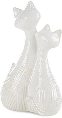 Urocza figurka dekoracyjna przedstawiająca dwa kotki, wykonana z trwałej glinki ceramicznej w kremowej kolorystyce, która doda wnętrzu ciepła i przytulności.