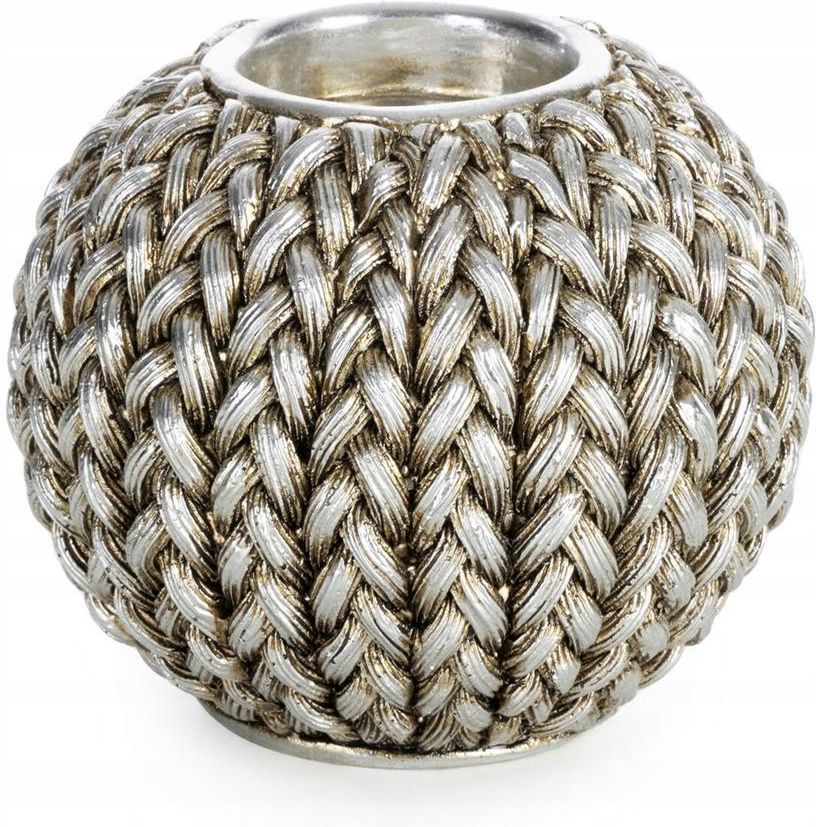 Okrągły świecznik MOLI na tealight z żywicy poliestrowej to elegancki i oryginalny dodatek, który łączy funkcjonalność z estetyką. Cała powierzchnia świecznika zdobiona jest wzorem imitującym pleciony sweterek, co nadaje mu ciepły i przytulny wygląd, przypominający miękki, ręcznie robiony dzianinowy akcent.