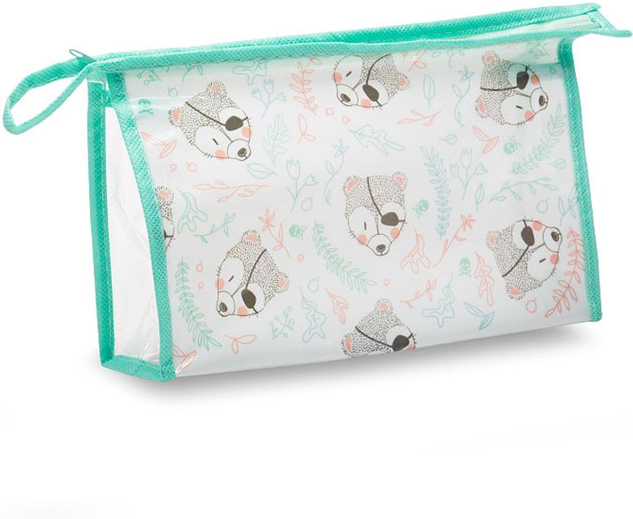 Kosmetyczka dziecięca KIDS wykonana z przezroczystego materiału, jedna ze stron jest zadrukowana uroczym motywem zwierzątek. Posiada ekspres oraz część, dzięki której można powiesić ją np. na haczyku. Wyprodukowana z trwałego surowca, łatwego do utrzymania w czystości.