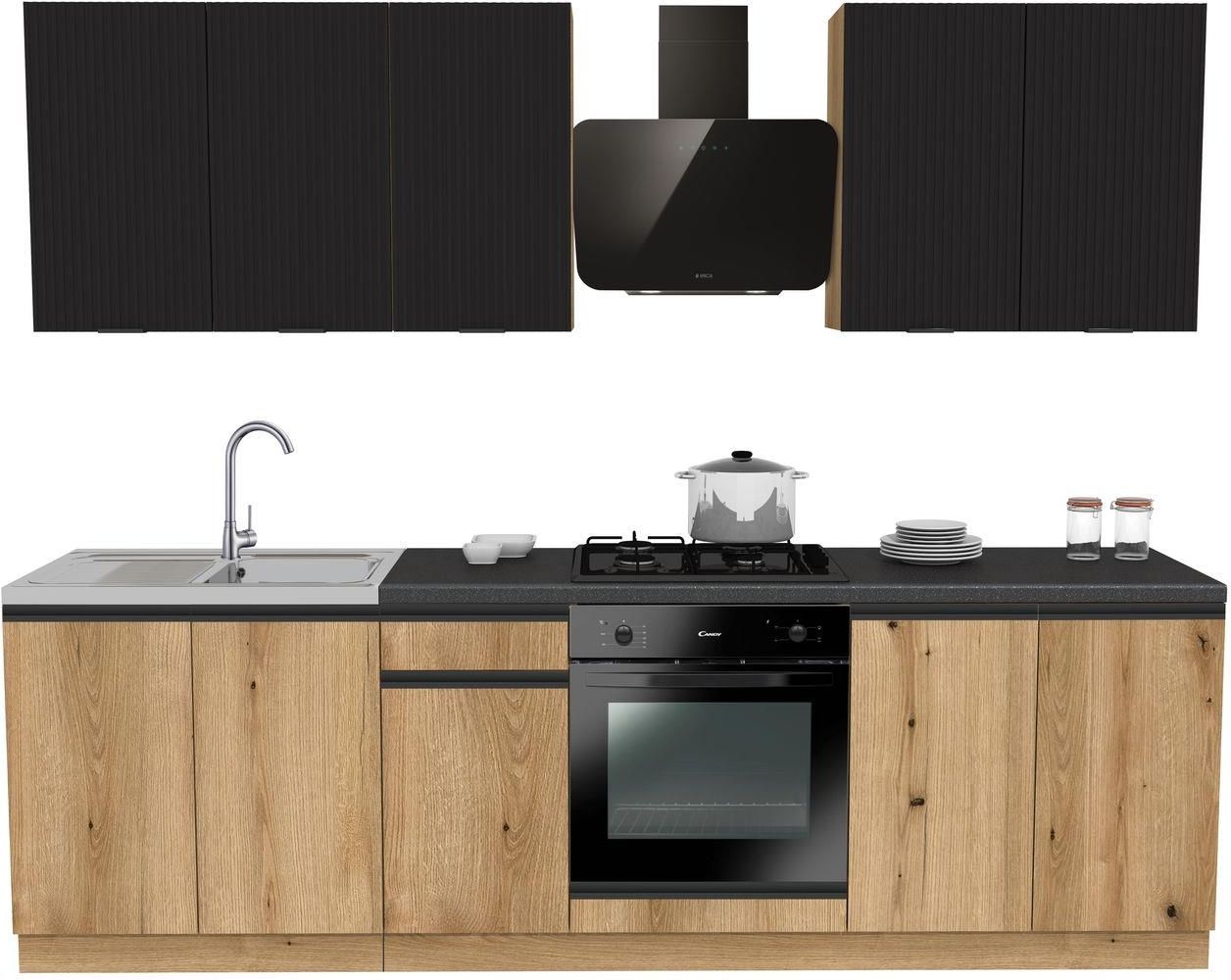 Fabryka Mebli Rawa Zestaw Mebli Kuchennych Presto Plus 260cm Płyta Laminowana Dąb Evoke/Lamela Czarny Białystok