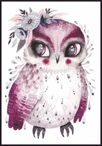 Urocza, fioletowa sówka, z piękną ozdobą z kwiatów na głowie, otoczona wianuszkiem z piór. Namalowana jest w modnym stylu boho, z wykorzystaniem bardzo harmonijnych barw, sprawdzi się zatem w dziecięcych pokojach urządzonych w praktycznie w każdym stylu. Parametry techniczne: Plakat jest drukowany na satynowym papierze, powlekanym wielowarstwowo o gramaturze 200 g z wykończeniem matowym. Charakteryzuje go bardzo dobre odwzorowanie kolorów oraz równomierne i jednolite krycie. Dzięki tym właściwościom, plakat przez długi czas będzie cieszył oko obserwatorów. Do plakatu nie jest dołączona ramka. Wizualizacje są tylko prezentacją projektu, mogą nie odzwierciedlać rzeczywistego rozmiaru, przed dodaniem do koszyka, prosimy o sprawdzenie wymiaru. Pamiętaj również, że obraz który widzisz, jest w palecie RGB, technologia druku CMYK, zatem mogą nastąpić różnice w kolorze, są one zazwyczaj subtelne.