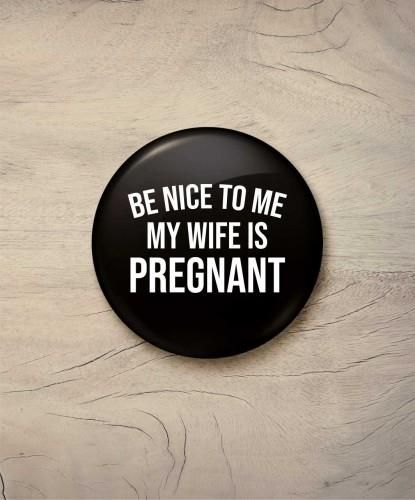Oczekiwanie na nowego członka rodziny to radosny czas dla przyszłego taty. Jeśli do tego ma poczucie humoru, z pewnością ucieszy go przypinka "Be nice to me my wife is pregnant". Button można nosić samodzielnie lub w zestawie z T-shirtem z tym samym hasłem. Wygląda dobrze przypięty do ubrania, torby lub plecaka.