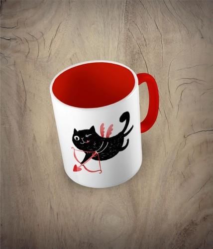 Kubek cupid cat Uroczy kubeczek dla zakochanych oraz dla wszystkich miłośników kotów. Nasz kot amor goni swój cel z czerwonym łukiem w łapkach. Koci kupidyn uważnie celuje i za moment jego strzała dosięgnie kogoś, kto stanie się zakochany. Kim będzie ten szczęśliwiec lub wybranka naszego mruczka? …